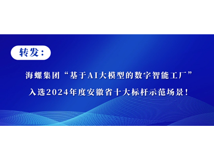 2025年6月9日,省科學技術廳發布2024年度安徽省十大標桿示范場景。由海螺水泥打造的“基于 AI 大模型的數字智能工廠”場景入選其中。